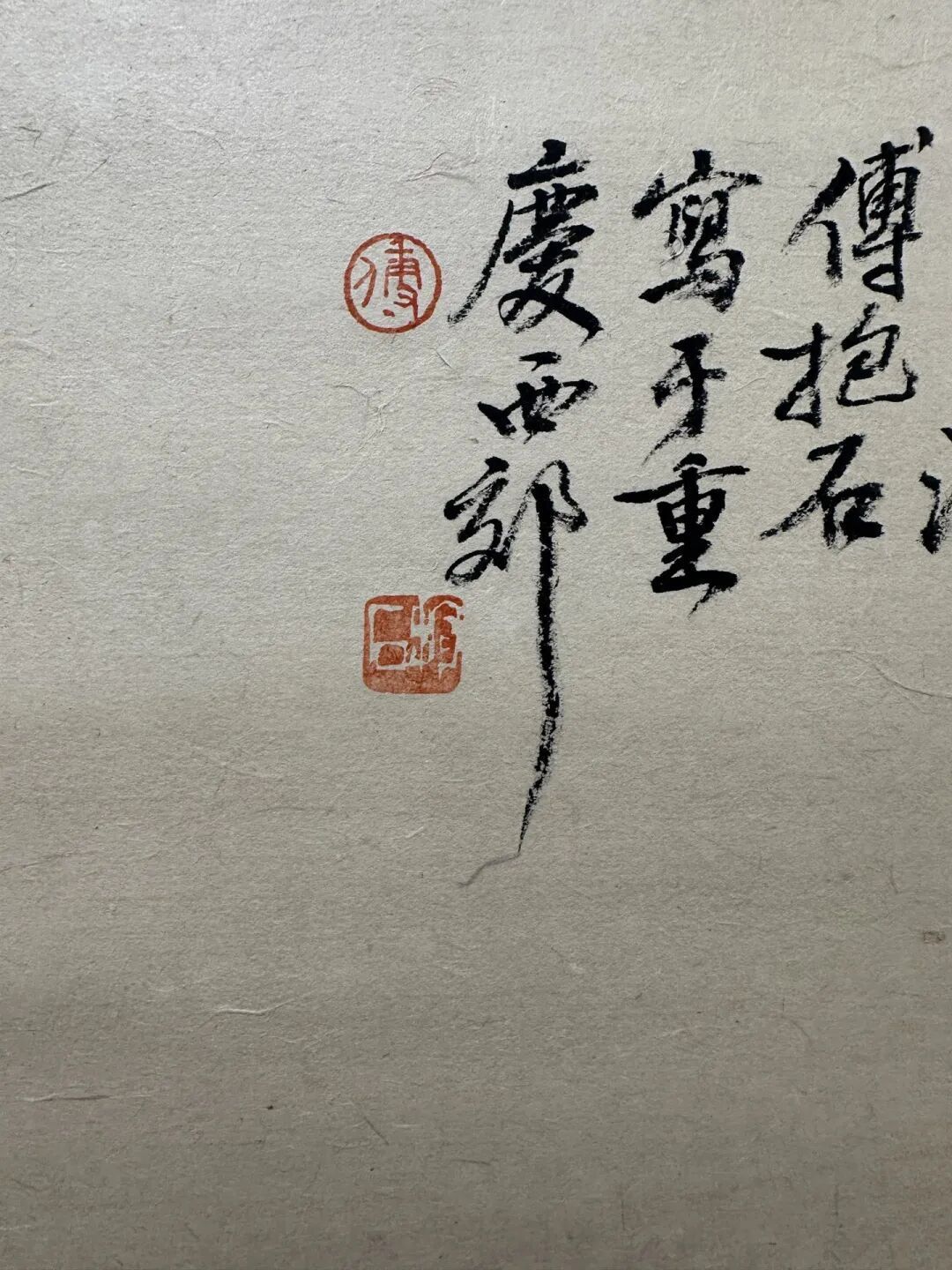 这画里啊,还藏着诗意。傅抱石喜欢把古人的诗词意境融入画中,这《隅峁桃苍迷楚寺》说不定就是受了哪首古诗的启发。你看着这画,就好像在读一首诗,能感受到诗人的那种情感,或豪迈,或婉约,让人回味无穷。