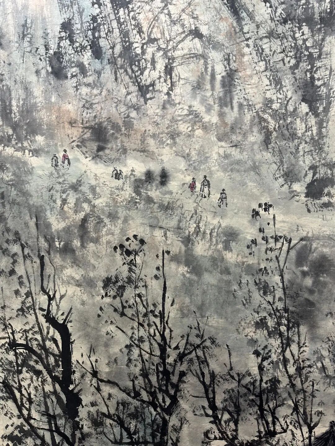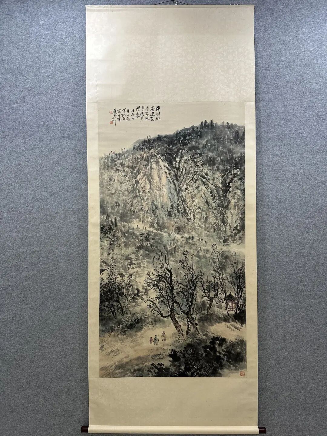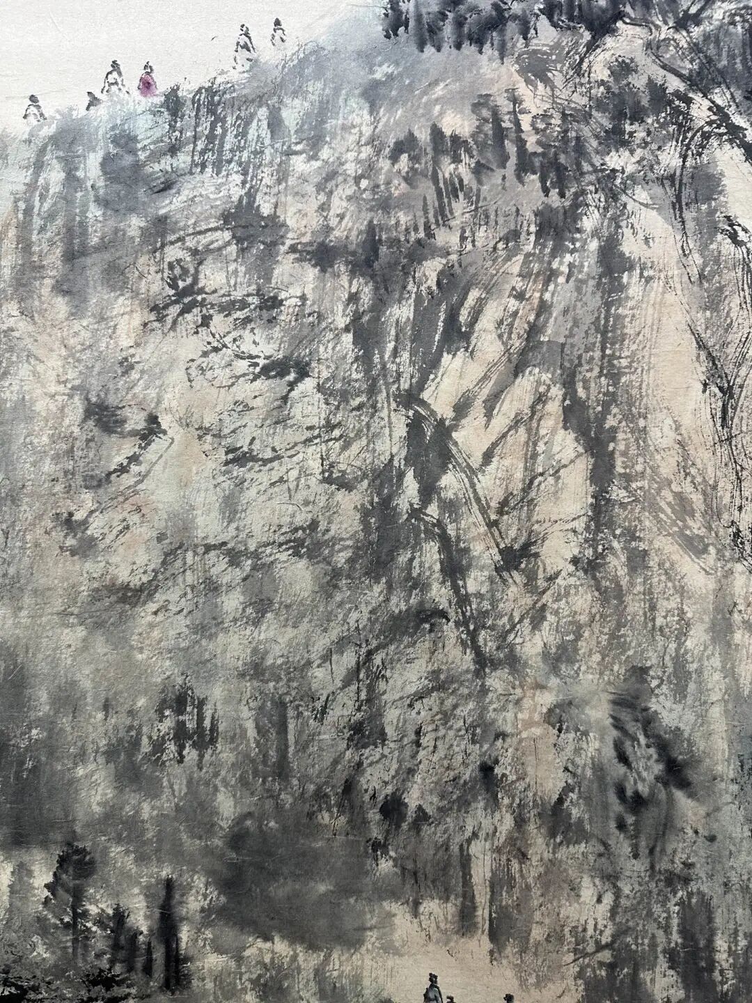 还有那山,连绵起伏,气势磅礴。傅抱石用墨色渲染,把山的厚重和深邃都表现出来了。你站在画前,就好像能感受到山风扑面而来,带着桃花的香气,让人心旷神怡。